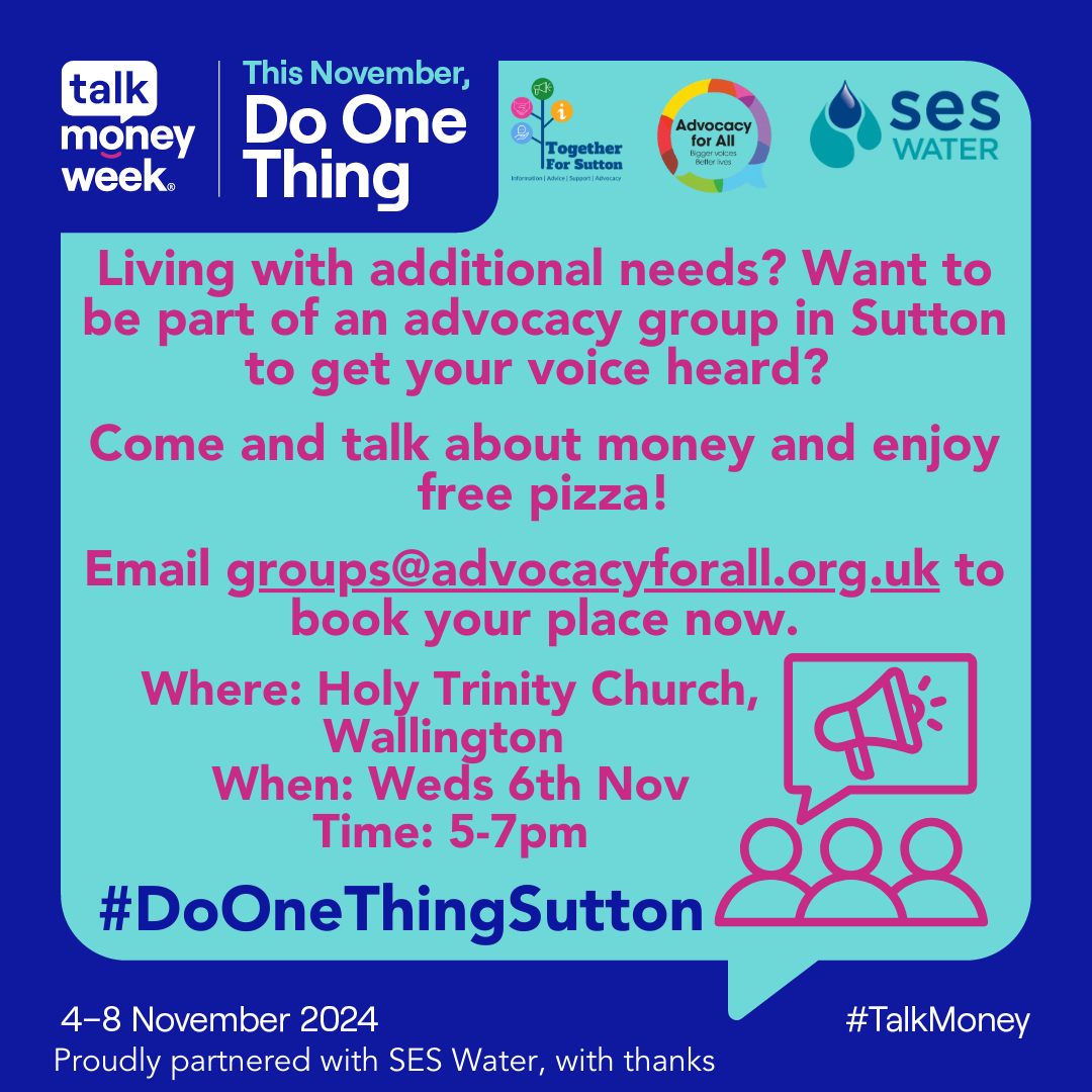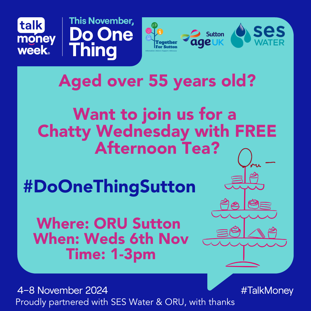 Together for Sutton have been busy working with key partners to organise a range of events and information sessions for this year’s Talk Money Week which kicks off on 4th November and runs until 8th November.